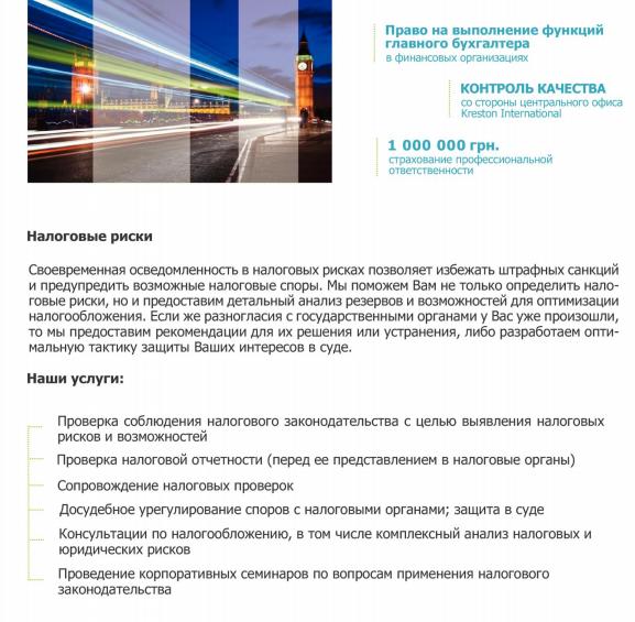 Крестон Геренти Груп Юкрейн является членом международной сети аудиторских и консалтинговых фирм Kreston International с 2007 года и предлагает профессиональные консалтинговые услуги по организации аудиторских проверок, бухгалтерскому и юридическому сопровождению бизнеса. http://guaranteegroup.com.ua |