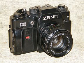ЗЕНИТ122 камера с ручной установкой экспозиционных параметров. Крепление объектива резьба М42х1. Ручная фокусировка по экрану с матовой поверхностью, кольцом микропризм и клиньями Додена. Механический затвор в фокальной плоскости. Диапазон выдержек 1/500-1/30 сек. и В. Минимальная выдержка синхронизации 1/30 сек. Измерение экспозиции по системе ТТ L . Информация в видоискателе: 3 светодиода. Верхний (красный) - передержка. Средний (зеленый)- нормальная экспозиция. Нижний (красный) - недодержка. Ручная протяжка пленки. Ручная установка чувствительности ISO 16-500. Автоспуск с задержкой 7-15 сек. Ручная обратная перемотка пленки. Питание 3В от 2-х элементов типа СЦ-32, МЦ 0.105, Мэллори D 386, Сейко SB - B 8 Вес (г) 820гр.