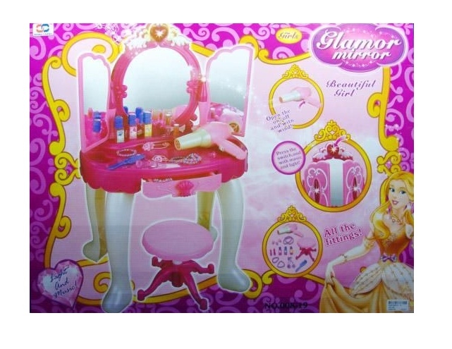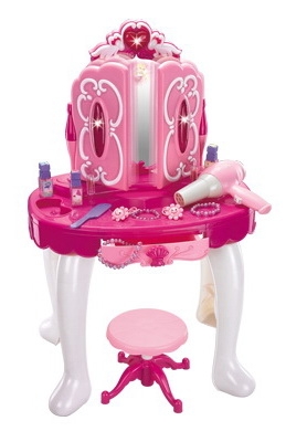 Ваша малышка сможет сидеть на стульчике, любоваться на свое отражение в зеркале и прихорашиваться. Девочка может делать себе и куклам прически. Сушить феном волосы.