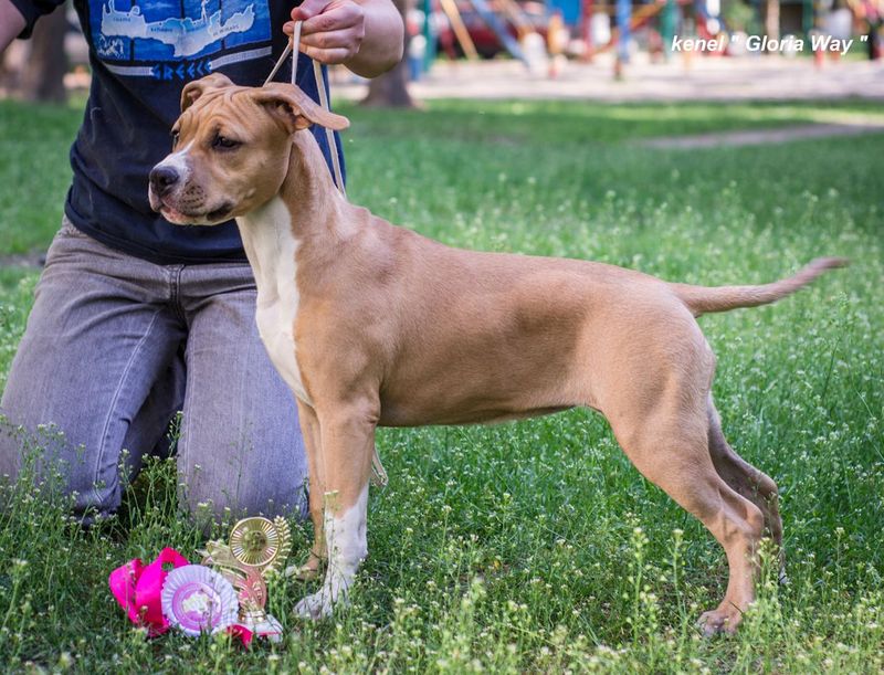 Супер щенок девочка палевого окраса Американского Стаффордширского Терьера.Малышка родилась 5 декобря 2013года,щенок полность привит и щенячка КСУ FCI. Участвовала на выставке 26.04.2014 FCI-CACIB "ЗОЛОТЫЕ ВОРОТА" Эксперт заявленный на породу АСТ: Lisbeth Mach (Швейцария) Brave girl Gloria Way Best baby!!! |
