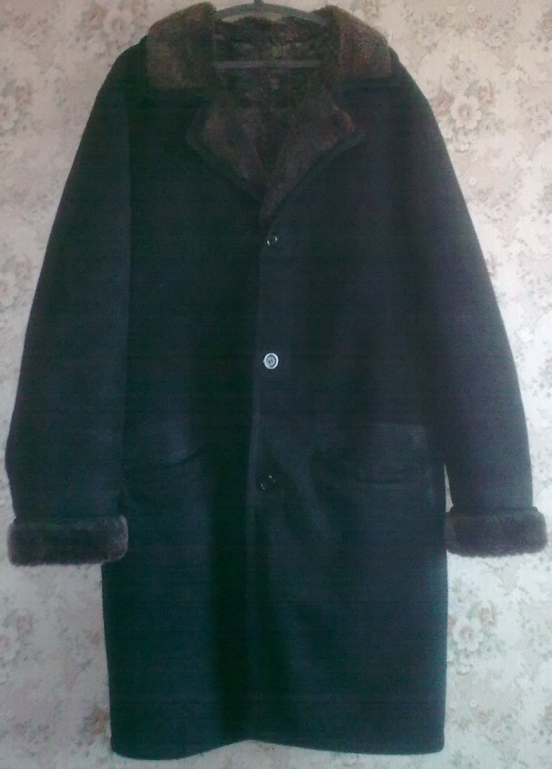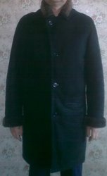 Дубленка муж., 48р., цвет антрацит, натур. мех, длина до колен. - Мужская одежда