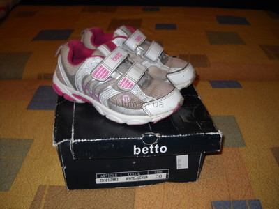 Продам кроссовки фирмы betto, в хорошем состоянии, не промокают, удобные застежки на липучке. Размер 30. По стельке—19см. |