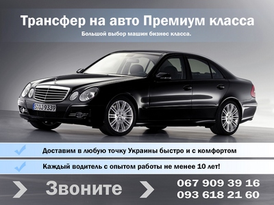 Хотите трансфер на авто бизнес класса за 10 минут? Трансферная компания Еdriver предлагает услуги: аренда авто с водителем, трансфер в Борисполь, такси на вокзал. В автопарке 50 машин от Mitsubishi Lancer до Rolls Royce Phantom. Доступные цены и индивидуальный подход. +380679093916 +380936182160 Юрий |