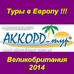 Великобритания Туры от Akkord-Tour: Туманный Альбион, в образах старинных замков и загадочных дворцов, благородных джентльменов и настоящих леди, строгих традиций и удивительных историй. Отличный шопинг, разнообразная кухня, знаменитые пиво и виски, богатейшие музеи и новая религия британцев - футбол. Туры для первого знакомства с Лондоном. Туры в северную и южную Англию. Тур по Соединенному Королевству. +38(032)2428377 +38(032)2328383 www.akkord-tour.com.ua |