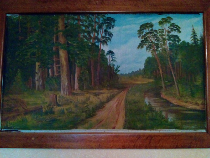 Картина маслом рисунок природа лесной пейзаж 1947 году Художник п.луйач 90*55см |