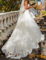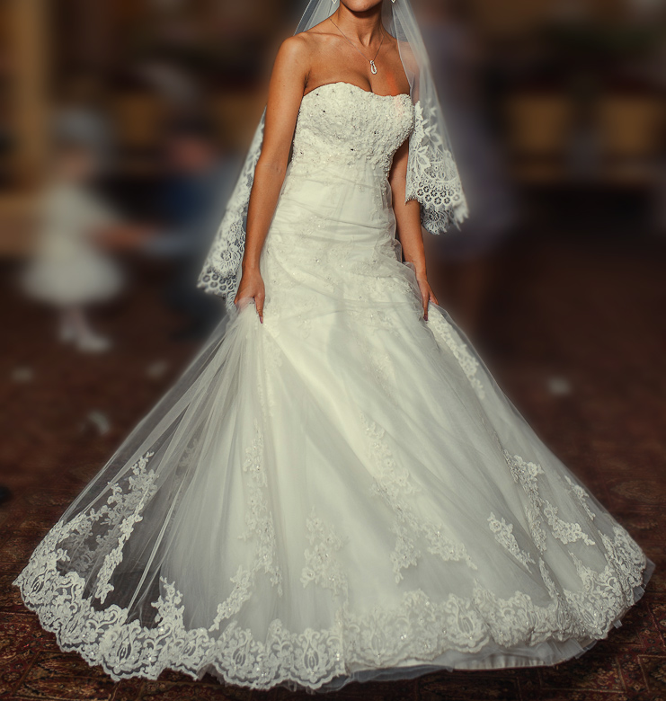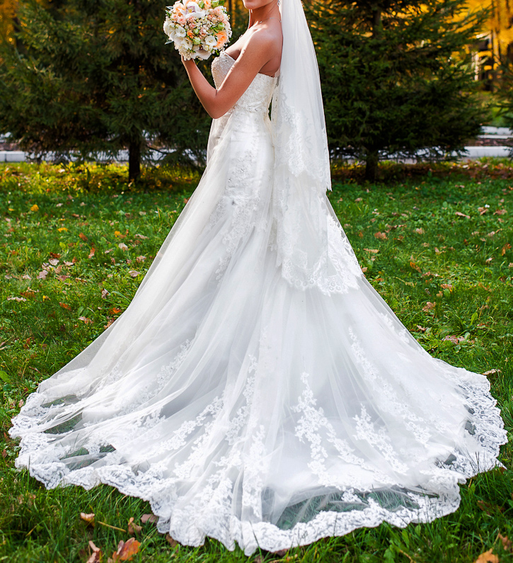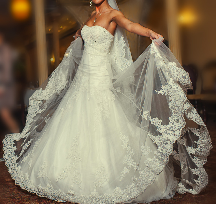 Платье одевалось один раз на фото сессию и в ресторан. Не венчанное, в загсе не было так, как роспись была намного раньше самого торжества!