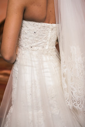 Все платье украшено очень красивым кружевом ручной работы от корсета до подола.