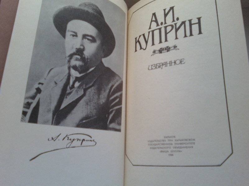 А.И.Куприн "Избранное". Издательство при Харьковском Государственном университете издательского объединения "Вища школа", 1988 г. В книгу вошли повести и рассказы за период с 1889 г. по 1914 г., а именно "Последний дебют", "Молох", "Чудесный доктор", "Река жизни", "Суламифь", "Яма", "Штабс-капитан Рыбников". Предлагаю также избранные произведения других классиков - Бунин, Горький, Успенский, Маяковский, Есенин,Шолохов и др. |