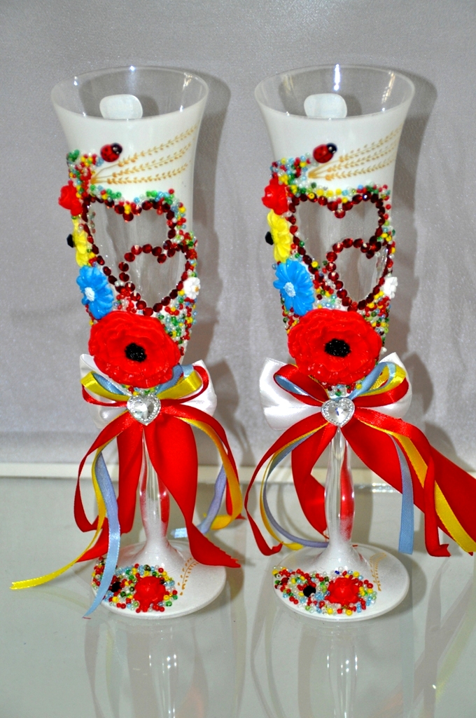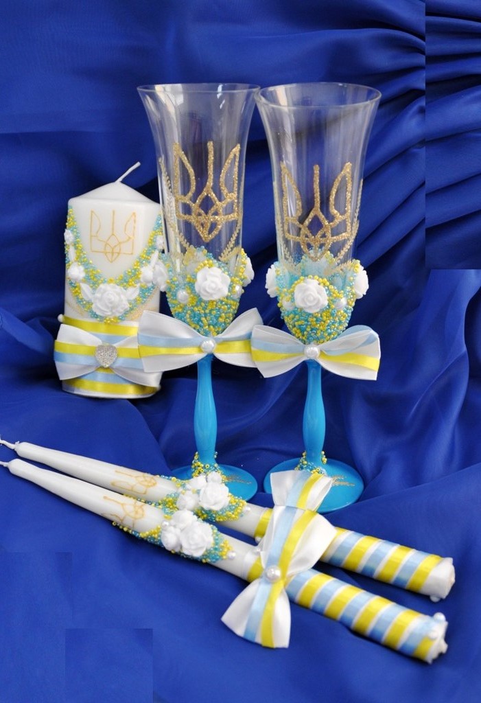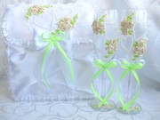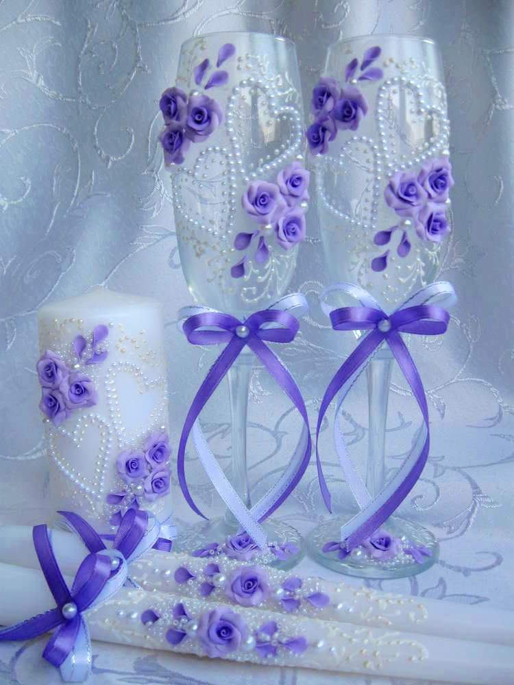 Свадебный набор в наличии в сиреневом цвете. Бокалы 280 грн, свечи (очаг и 2шт родительские) - 320грн. Под заказ можно оформлять по цвету Вашей свадьбы. При покупке набора и еще других аксессуаров будет действовать скидка. Есть комплект в целоном цвете бокалы и свадебный сундучок |
