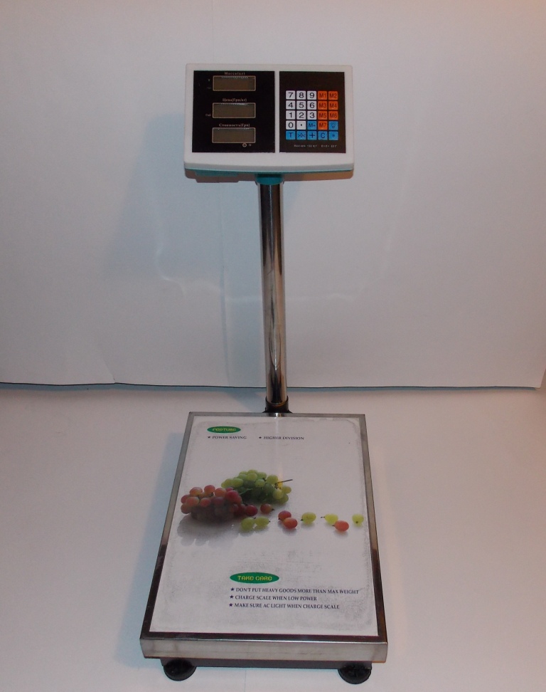 Продам новые электронные весы до 150 кг. Весы электронные марки TCS-A, наибольший предел взвешивания 150 кг., наименьший – 1 кг. Цена деления, дискретность, 50 г. Тип весов – платформенные со стойкой. Могут использоваться без стойки(платформа подключается к табло и весы готовы к работе). Это дает возможность увеличить рабочую поверхность платформы. Размер платформы 30/40 см. Платформа выполнена со стального профиля, её рабочая поверхность с пищевой нержавейки. Платформа имеет регулируемые ножки. Табло весов изготовлено из пластика. Стойка- нержавейка.