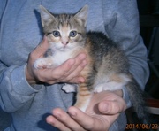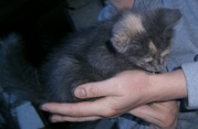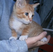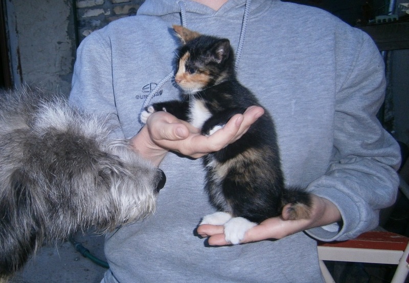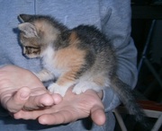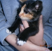Темненький, 3х цветный, резкие переходы между цветом окраса, на лапках - белые носочки - бандитик и заводила;