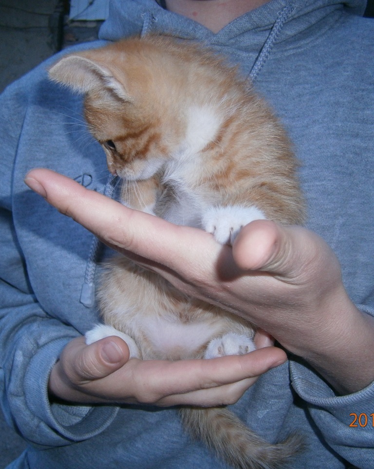 Пепельный (цвет похож на шотландских вислоухих) с персиковыми пятнышками - тихоня и хитруля, когда разыграюсь - активный, как остальная котосемья.