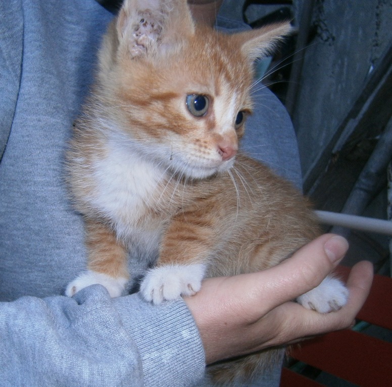 Рыжий с белым, на лапках - белые носочки - дружок бандита по бандитским играм;