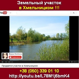 Продажа недвижимости в Хмельницком. Земельный участок от хозяина без посредника. Продается участок в Хмельницком. Общая площадь участка - 1.18га. Участок расположен недалеко от западно-окружной дороги, в живописном месте на берегу реки Южный Буг с выходом к рукотворному озеру. Презентация объекта на видео в youtu.be. Стоимость земельного участка 50000 у.е. Елена +38(050)3390110 http://youtu.be/L78M1j6bmK4 |