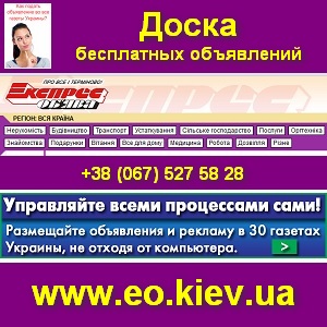 Купля, продажа, аренда, услуги. Работа, знакомства, отдых. Покупка, продажа, аренда недвижимости, автомобилей, стройматериалов, оборудования, оргтехники, мобильных телефонов, бытовой техники, мебели, одежды, продуктов питания. Все для отдыха и развлечений. Здесь же можно подать и оплатить объявления в 30 газет Украины. Антонина +38(067)5275828 +38(050)3121491 Киев, Гоголевская, 22-24 editor_eo2007 @ ukr.net www.eo.kiev.ua |