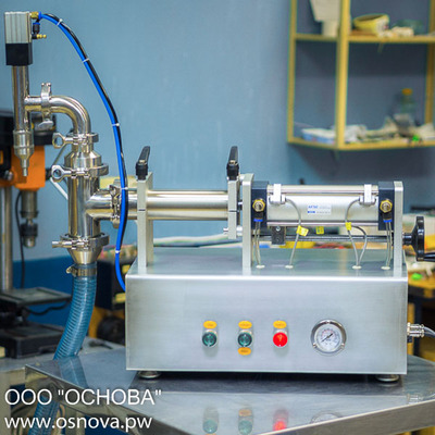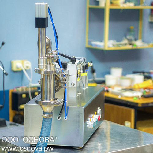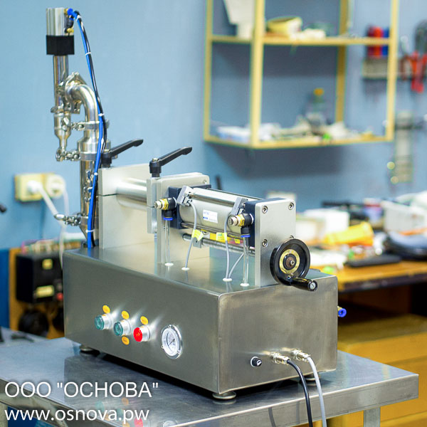Дозатор жидкости оснащен пневматическим приводом, что обеспечивает надежность и точность работы устройства, но требует наличие компрессора или линии сжатого воздуха.
