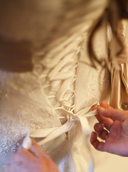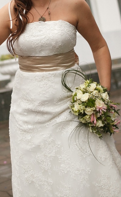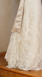 Итальянское свадебное платье. Кружевное со шлейфом. А-силуэт, цвет айвори. Купленное в фирменном салоне за 12 000 грн. В идеальном состоянии (практически одела и сняла). Не венчанное. После дорогой химчистки. Подойдет на размер от 44 до 50 (шнуровка сзади). Рост 168-170 см. Платье шикарное, элегантное и стильное, европейский дизайн. Я на свадьбе была 48-50 размера (реальные фото здесь). На фото шнуровки видно, что его можно стянуть до 44 размера (S/M), а можно и растянуть на 50-52. Кружево в реальности смотрится гораздо дороже чем на фото. |
