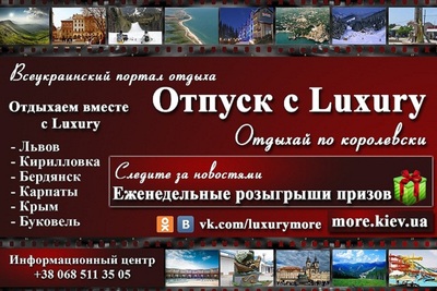 Приглашаем посетить наш сайт more.kiev.ua. Всеукраинский портал отдыха. Отдыхай по королевски. На сайте представлены гостиницы, отели, частные дома, базы отдыха таких городов как Львов, Бердянск, Кирилловка, Крым, Карпаты, Буковель. На сайте проводятся еженедельные розыгрыши. К сайту прикреплен оператор 068 511 35 05 Анастасия 0956702999@mail.ua |