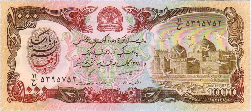 1000 АФГАНИ 1991 АФГАНИСТАН - Монеты, банкноты
