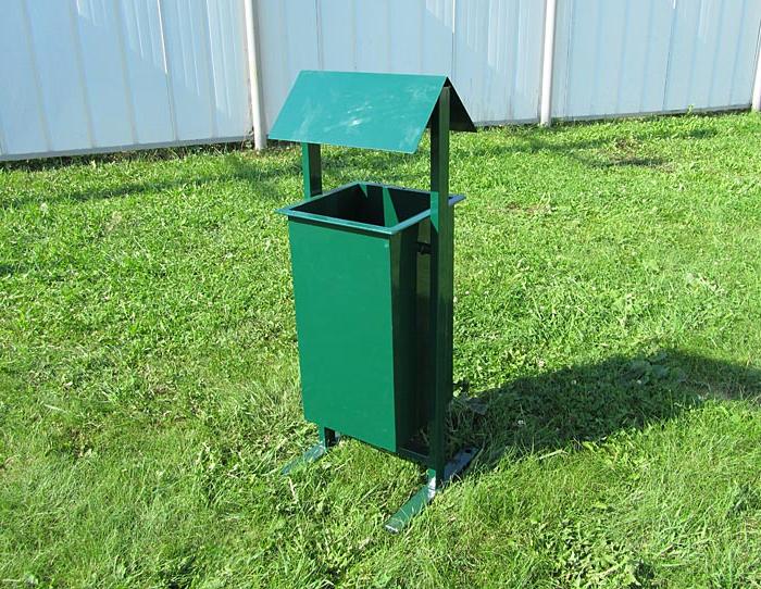 Уличная металлическая переворачивающаяся урна с крышей. Небольшая крыша, установленная над мусоросборником защитит урну от дождя и мусор не намокнет. Вытащить мусор удобно - урна наклоняется в две стороны.