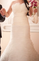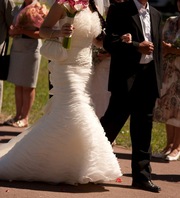 Свадебное платье в отличном состоянии, после химчистки! Цвет -айвори. Размер - 44-46 (плюс-минус регулируется шнуровкой).Не венчанное.Очень удобное.Подчеркивает фигуру.Купила за 7000 грн, а продам за 3500 грн!!!Торг уместен. Примерка возможна в Киеве. |