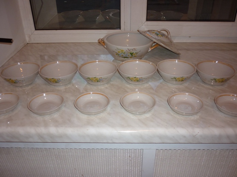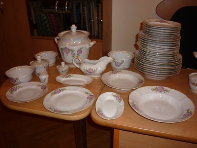 Вся посуда фабричная, на каждом изделии стоит клеймо фабрики. Цены: столовые сервизы все по 360грн. Чайный сервиз 150грн Кофейный сервиз 150грн Набор для вареников 170грн 063 817 96 27 Звоните в любое время. |