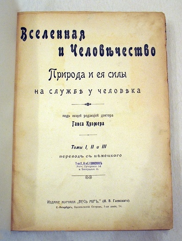 Ганс Крэмер. Вселенная и человечество. Природа и ее силы на службе человека. Тома 1,2,3 в одной книге. Перевод с немецкого. 1842 год. Книга без обложки. Но все страницы в наличии и в отличном состоянии. Предлагайте свою цену. Цена договорная. Пишите на адрес - parus88811@rambler.ru |