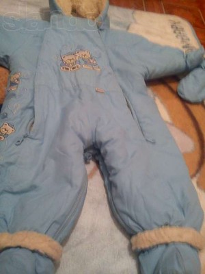 Для мальчика, размер: 74,80 класнючий комбез нежно-голубого цвета, на овчине молочного цвета, тоненький и легкий, малышу будет тепло и легко двигаться. Комбез - трансформный, отстегиваются тапочки и варежки. состояние новый, идеальное. отходили одну зиму. на РОСТ 74- 80. стирается и гладится отлично. можно и для девочки ( я для дочери покупала) звоните пишите. (в реальности комбез ярче, фото плохие) |