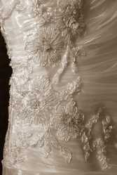Свадебное платье цвета шампанского с позитивнейшей энергентикой пошито по индивидуальном заказу в салоне "Фея" г. Киев. Соединяет в себе несколько стилей согласно журналам ведущих кутюрье (4 примерки), с сумочкой для телефона (без фаты). За ориентир верхняя часть платья была взята с фото А. Джоли и Б. Питта, расшито вручную. Одето единожды на счастливую роспись (без венчания и застолий так как предстоял полет на отдых Париж-Ванеция). Размер s/м рост 165-175. |