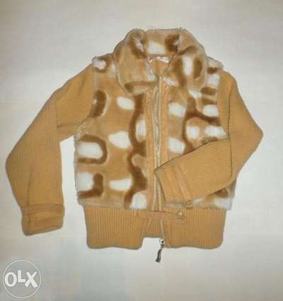 Теплая кофта-курточка на девочку. Полочка и спинка изделия -искусственный мех, рукава и нижняя часть изделия - вязанные,застежка- молния. Длина изделия по спинке-43 см, длина плеча-8 см , длина рукава-44 см. В хорошем состоянии! 067-856-53-97 Лена |