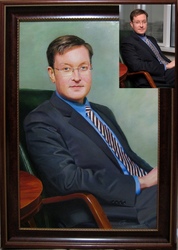 Фотоснимок говорит много о человеке, о характере, привычках, манерах. Художник обдуманно подбирает и компонует холст, наполняет содержанием холст. Портрет с фото на заказ обьединёный в одной композиции, образуется в живой художественный образ.
