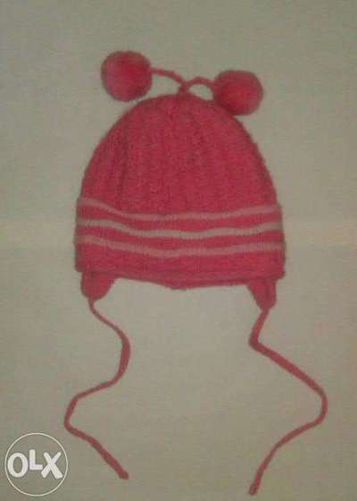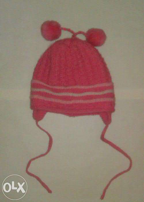 Шапочка вязаная (двойная вязка) осень-зима на девочку 3-5 лет. Розового цвета с балабонами сзади, с ушками на завязках. Состав шерсть-30%, акрил - 70%. В хорошем состоянии! |