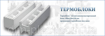 Термоблоки – это блоки, из которых строятся современные термодома. Эти блоки делаются из пенополистирола, вокруг которого наращивается слой бетона. Это очень упрочняет конструкцию, так как блоки при состыковки являют собой монолитную стену, которая будет противостоять землетрясениям и любым внешним воздействиям вообще. Помимо прочности, у этого вида так называемого «легкого бетона» есть еще одна важная характеристика – теплоизоляция. Такой дом хорошо держит тепло. И звуки изолирует. При постройке дома стандартные по размеру блоки устанавливаются решеткой, а промежутки и полости заливаются бетоном. Размер блока: 1200х250х250мм. Цена - 33грн./блок. |