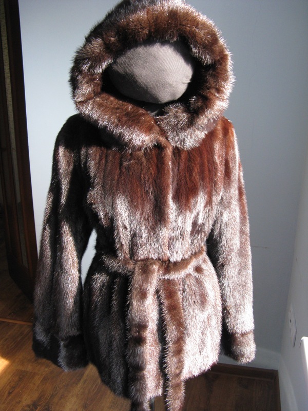 Норковая шуба с капюшоном и поясом Польша - Женская одежда