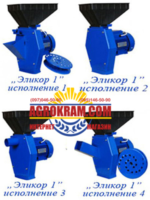 Зернодробилки Эликор, производства полтавского завода «Электромотор», первые массово выпускаемые бытовые ДКУ на постсоветском пространстве. Имеют классическую конструкцию, мощность двигателя 1.7 кВт, 2 сита в комплекте. Выпускаются в различных исполнениях: Эликор 1 исп.1 – перерабатывает зерно на дерть, овощи, фрукты; Эликор 1 исп.2 – перерабатывает зерно на дерть; Эликор 1 исп.3 – перерабатывает зерно, початки кукурузы на дерть; Эликор 1 исп.4 – перерабатывает зерно, початки кукурузы на дерть, корнеплоды, стебли. Эликор 1 исп.5 – перерабатывает зерно, початки кукурузы на дерть, солому. |