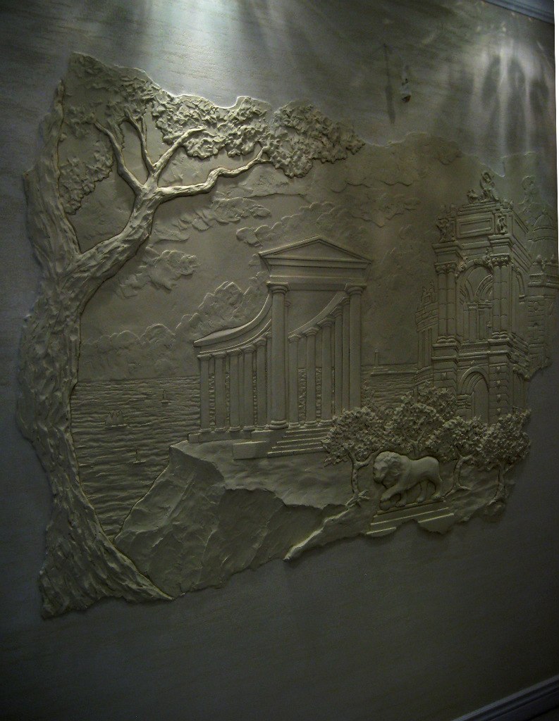 Преимущества барельефов в интерьере: +Скрывает недостатки стен и превращает их в достоинства; +Изготавливается из натуральных или экологически чистых материалов; +Делает неповторимыми интерьеры и экстерьеры; +Возможно изготовить копии музейных экспонатов и наполнить ими Ваш интерьер; +Для любого помещения подбирается своя тематика изображений и скульптур; +При помощи барельефа можно объединить в единый стиль разные элементы декора; +Лишние и ненужные архитектурные формы, которые присутствуют в помещении Вашего дома (например шершавая колонна), при оформлении барельефом, становится привлекательным достоинством интерьера и даже шедевром.