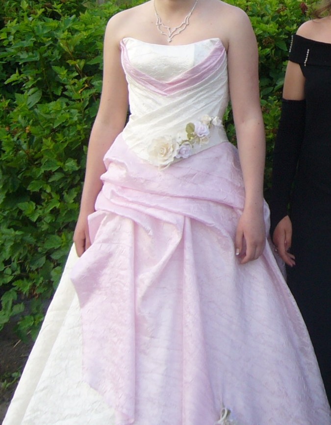 Красивое свадебное платье(корсет, юбка)нежно-кремового цвета с нежно-розовыми вставками 44 р. Было одето 1 раз на выпускной. Платье в идеальном состоянии. В комплект входят перчатки, подъюбник(кольца), украшения на платье. |