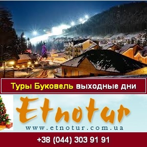 Буковель на ВЫХОДНЫЕ 2014-2015. Этнотур Выезд комфортабельным автобусом из Киева каждый ЧЕТВЕРГ. маршрут: Киев - Ясиня - Буковель (Драгобрат) - Киев. Возвращаем в Киев в понедельник до 07.00. Проживаем в Ясиня (12 км от Буковеля). В стоимость: 3 дня катания, 3 трансфера, 3 завтрака, 3 ужина, проживание, проезд. Горнолыжные туры на Буковель 2015. Буковель на выходные дни - 1050 грн. +38(044)3039191 +38(067)2253399 Киев, ул. Жилянская, 7-Б www.etnotur.com.ua |