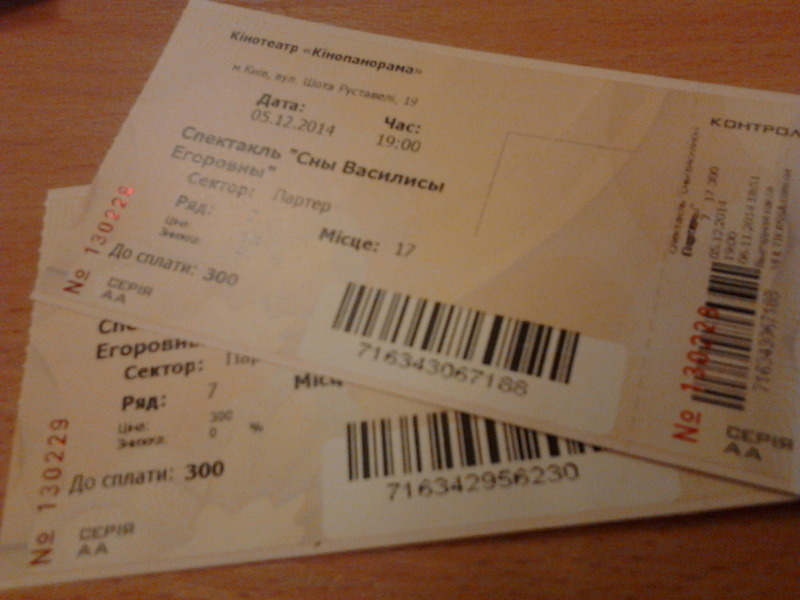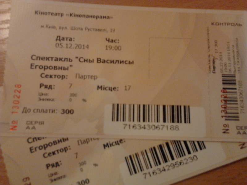 Продам, предлагаю - частное лицо: Билеты в театр, Украина, Киев и областьКод: 455996 Создано: 04-12-2014 23:28