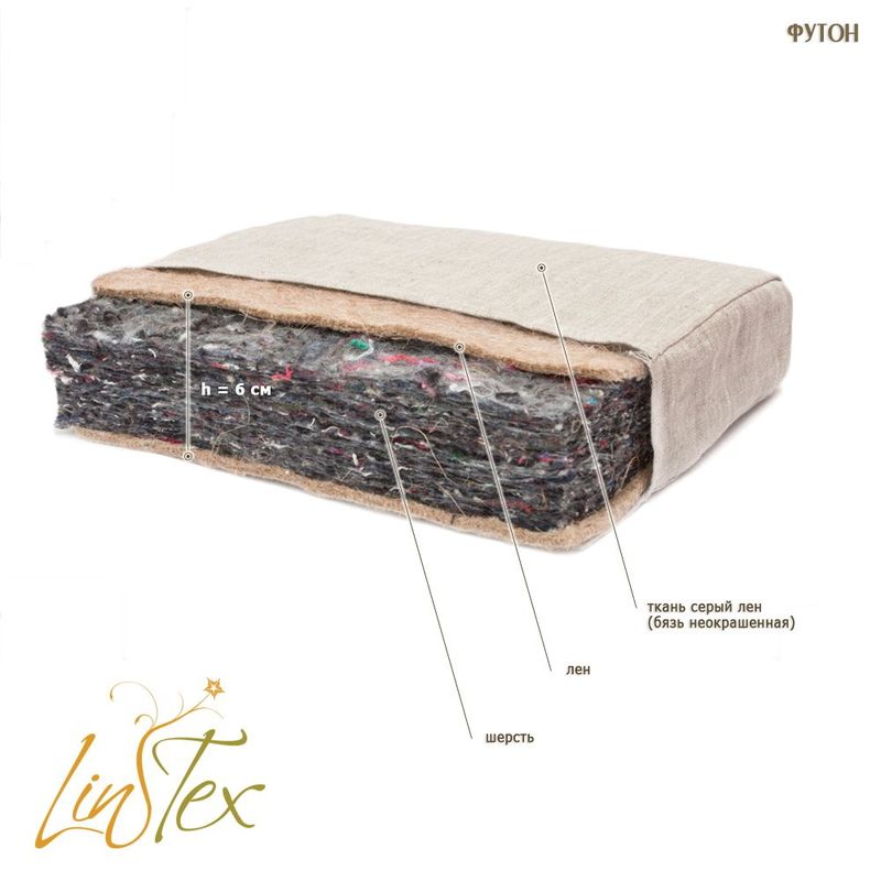 матрасы в ассортименте высотой 4-6 см на раскладные диваны, выравнивает поверхность, защищает от воздействия вредных веществ от синтетических материалов. Наполнитель натуральный, без клея. В качестве главного компонента - иглопробивной лен, материал не слеживается, не крошится, обладает бактерецидными, антисептическими свойствами, имеет приятный запах сена. Обивочные ткани - небеленый хлопок или серый лен Размеры и цены www.ecolintex.com.ua |