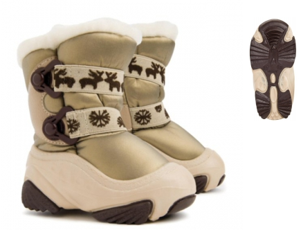 Легкая литая подошва с воздушной прослойкой, создающая термоэффект для детской ножки.Они очень легкие приблизительно 500гр пара ,выдерживают до -20 градусов мороза.