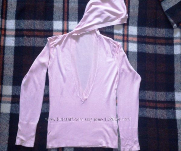 1) Розовая с капюшеном кофточка с V-образным вырезом. H&M. S. 80% viscose, 18 % polyamide, 2% elasthan.