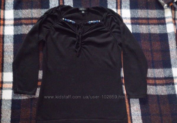 3) Черная элегантная кофточка с завязкой бусинами. Nine West. L. 59% cotton, 41% rayon.