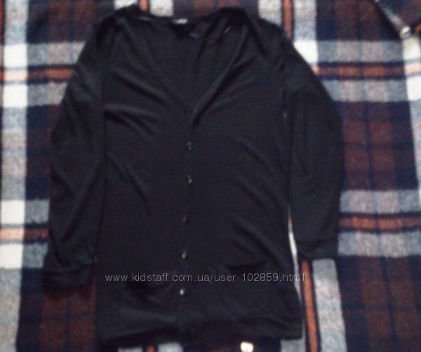 5) Черный тонкий кардиган на пуговицах с карманами. F&F. 12.75% polyester, 25% cotton.