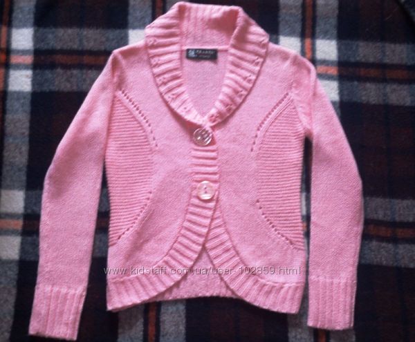 6) Розовая вязаная кофточка на пуговицах. Yuanta. 80% viscose, 20% nylon.