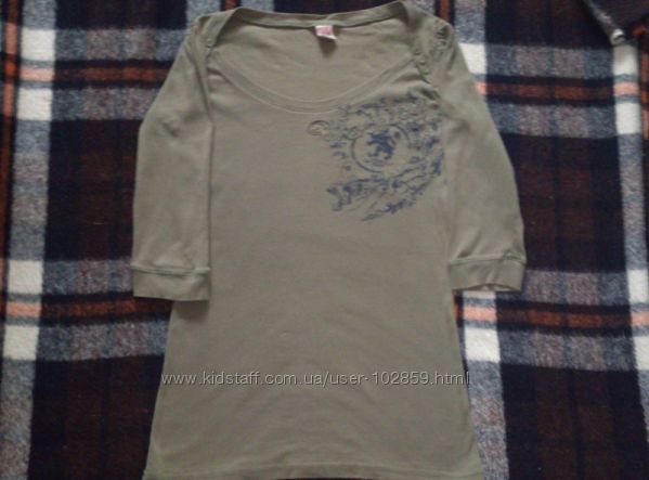 5) Бежево-кофейный реглан с V-образным вырезом и рукав ¾. Hawksheed. 14 размер. 95% cotton, 5% elasthan.