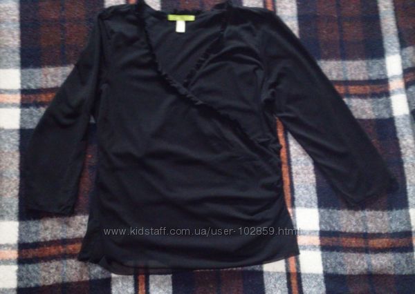 3) Черная двойная с запахом и складочками кофточка. Sigrid Olsen. Рукав ¾. L. 100% nylon.