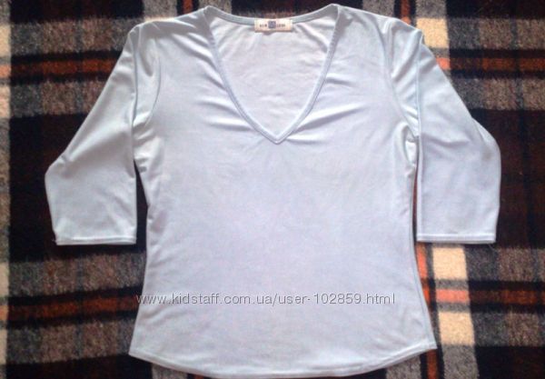 9) Светлоголубая кофточка с V-образным вырезом и рукав ¾. New Look. 12|38-40. 92% polyester, 8% elastane.