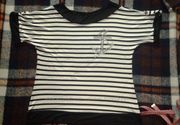 4) Белая в черную полоску широкая кофточка с коротким рукавом. Gustor. L. 95% viscose, 5% elasthan.