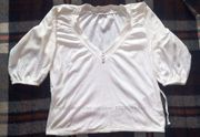 8) Белая тоненькая кофточка с V-образным вырезом и рукав ¾, сзади завязывается. Sant Tropez. M. 100% cotton.